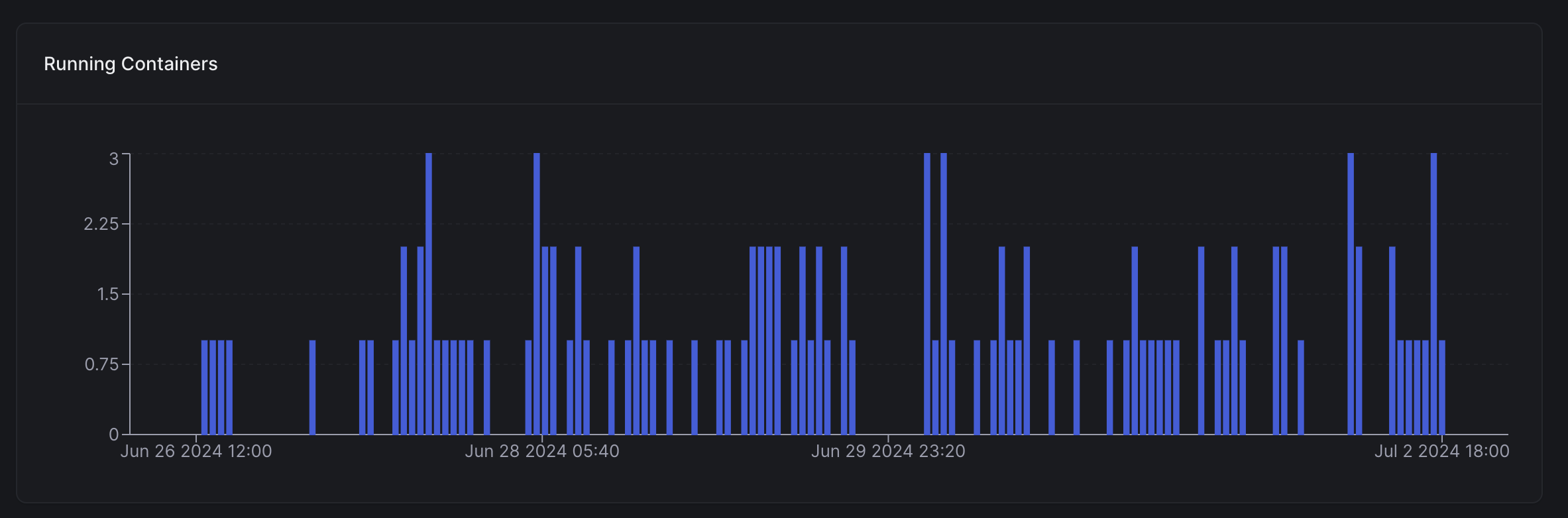 In the Metrics section of the dashboard, you can view a historical graph of all containers running over time.
