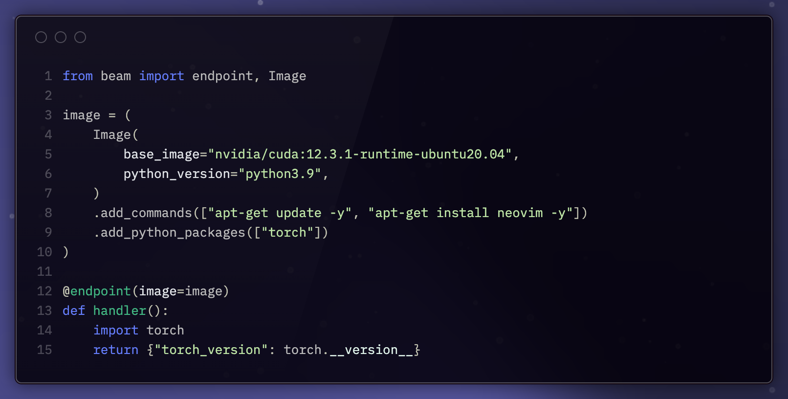 .beamignoreto ignore common folders like.venv/.gitpoetry - Improved logs for image builds that fail
